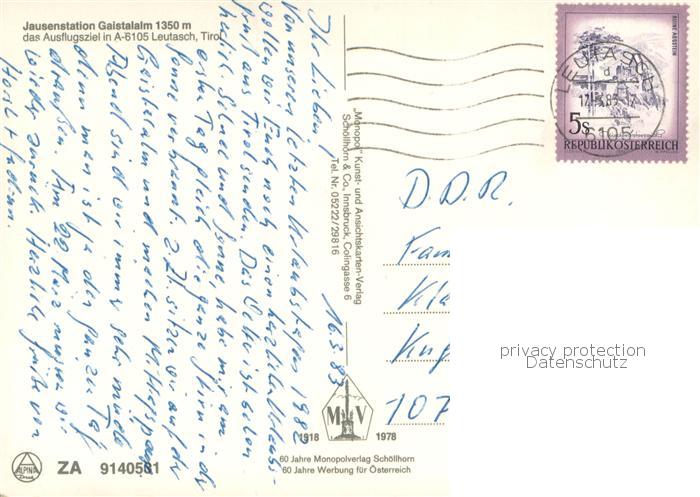 73774720 alte Postkarte Leutasch Jausenstation Gaistalalm postalisch gelaufen Erhaltung siehe scans [WerneD78] KatCode: 11390332070326