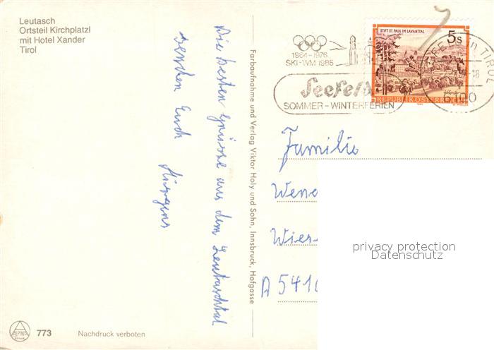 73295899 alte Postkarte Leutasch Kirchplatzl mit Hotel Xander Fliegeraufnahme postalisch gelaufen Erhaltung siehe scans [WerneD78] KatCode: 11390332070326
