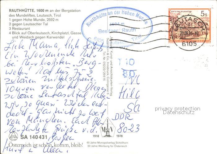 72013031 alte Postkarte Leutasch Rauthuette postalisch gelaufen Erhaltung siehe scans KatCode: 11390332070326