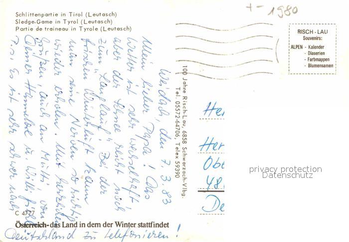 72909188 alte Postkarte Leutasch Schlittenpartie postalisch gelaufen Erhaltung siehe scans [NatalD47] KatCode: 11390332070326