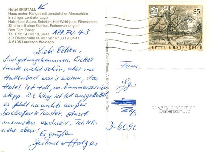73368237 alte Postkarte Leutasch Weidach Hotel Kristall postalisch gelaufen Erhaltung siehe scans [LiesaD40] KatCode: 11390332070326