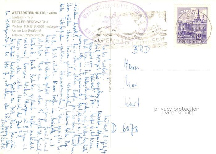 73517509 alte Postkarte Leutasch Wettersteinhuette postalisch gelaufen Erhaltung siehe scans [KathaD81] KatCode: 11390332070326