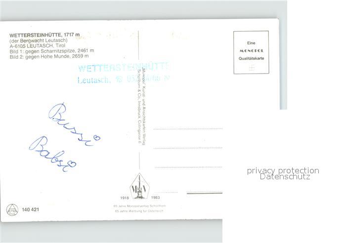 71850587 Leutasch Wettersteinhuette Scharnitzspitze Hohe Munde Alpen Wappen postalisch nicht gelaufen Erhaltung siehe scans KatCode: 11390332070326