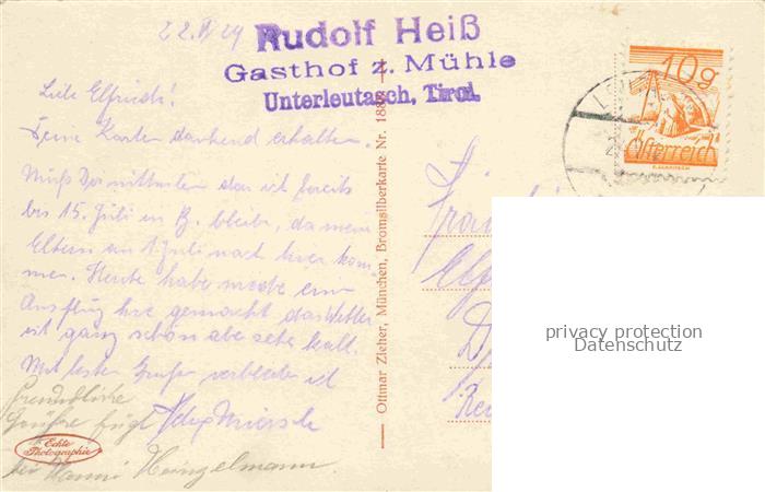 74122114 alte Postkarte Leutaschtal Tirol AT Panorama Blick gegen Hohe Munde Gehrenspitzen Oefelekopf Wettersteingebirge postalisch gelaufen Erhaltung siehe scans [FriedD77] KatCode: 11390332070326