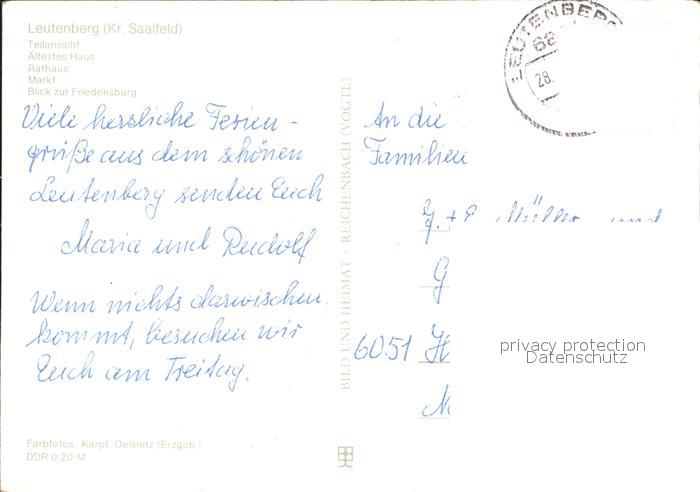 72015768 alte Postkarte Leutenberg Thueringen aeltestes Haus Rathaus Markt postalisch gelaufen Erhaltung siehe scans KatCode: 11110016073106