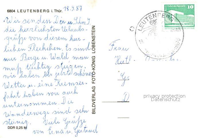 73272016 alte Postkarte Leutenberg Thueringen Ansicht vom Waldrand aus Blick ins Tal postalisch gelaufen Erhaltung siehe scans [FriedD77] KatCode: 11110016073106