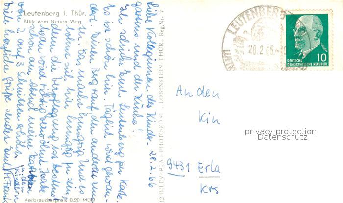 73045404 alte Postkarte Leutenberg Thueringen Blick vom Neuen Weg postalisch gelaufen Erhaltung siehe scans [PaolaD17] KatCode: 11110016073106