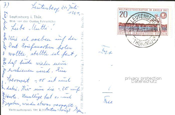 72326129 alte Postkarte Leutenberg Thueringen Blick von der Gustav Fehierhoehe postalisch gelaufen Erhaltung siehe scans KatCode: 11110016073106