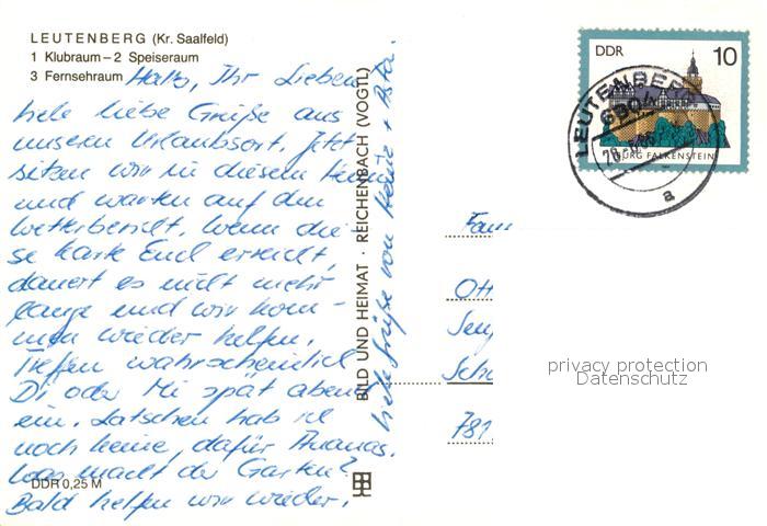 73100726 alte Postkarte Leutenberg Thueringen FDGB Erholungsheim Katja Niederkirchner postalisch gelaufen Erhaltung siehe scans [KathaD81] KatCode: 11110016073106