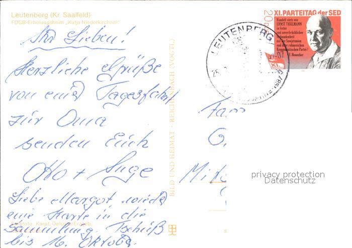 72057210 alte Postkarte Leutenberg Thueringen FDGB Erholungsheim Katja Niederkirchner postalisch gelaufen Erhaltung siehe scans KatCode: 11110016073106
