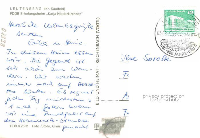 72633137 alte Postkarte Leutenberg Thueringen FDGB Erholungsheim Katja Niederkirchner Springbrunnen postalisch gelaufen Erhaltung siehe scans [FriedD77] KatCode: 11110016073106