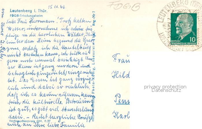 73722346 alte Postkarte Leutenberg Thueringen FDGB Erholungsheim postalisch gelaufen Erhaltung siehe scans [WerneD78] KatCode: 11110016073106