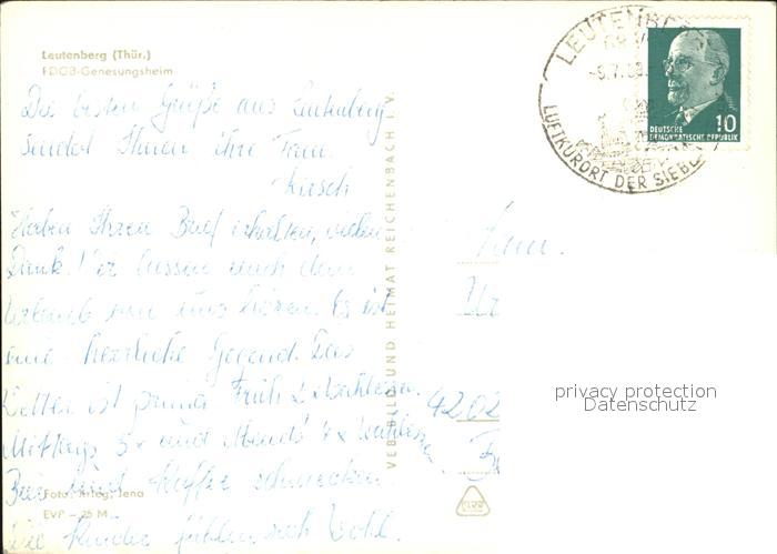 72467731 alte Postkarte Leutenberg Thueringen FDGB Genesungsheim postalisch gelaufen Erhaltung siehe scans KatCode: 11110016073106