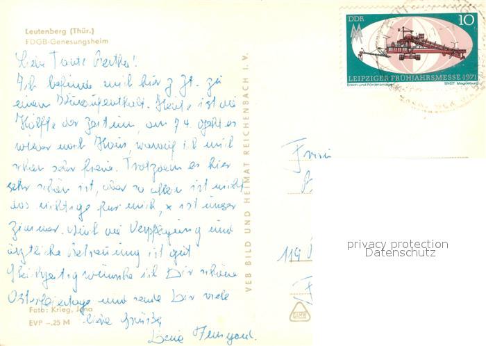 73102494 alte Postkarte Leutenberg Thueringen FDGB Genesungsheim postalisch gelaufen Erhaltung siehe scans [KathaD81] KatCode: 11110016073106