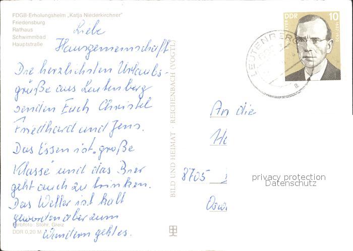 72333864 alte Postkarte Leutenberg Thueringen Friedensburg Hauptstrasse Schwimmbad postalisch gelaufen Erhaltung siehe scans KatCode: 11110016073106