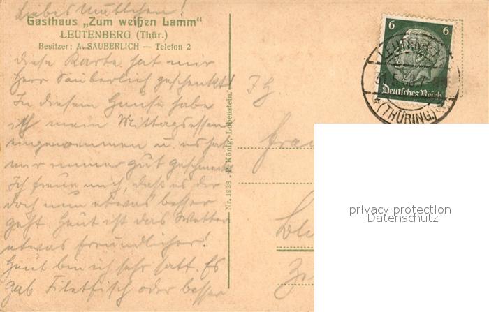 33090104 alte Postkarte Leutenberg Thueringen Gasthaus zum weissen Lamm postalisch gelaufen Erhaltung siehe scans [LiesaD40] KatCode: 11110016073106