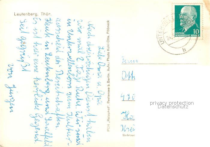 73750245 alte Postkarte Leutenberg Thueringen Gaststaette zur Garkueche Marktplatz Freibad Panorama postalisch gelaufen Erhaltung siehe scans [FriedD77] KatCode: 11110016073106