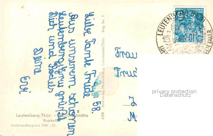72729490 alte Postkarte Leutenberg Thueringen HO Gaststaette Ratskeller postalisch gelaufen Erhaltung siehe scans [FriedD77] KatCode: 11110016073106
