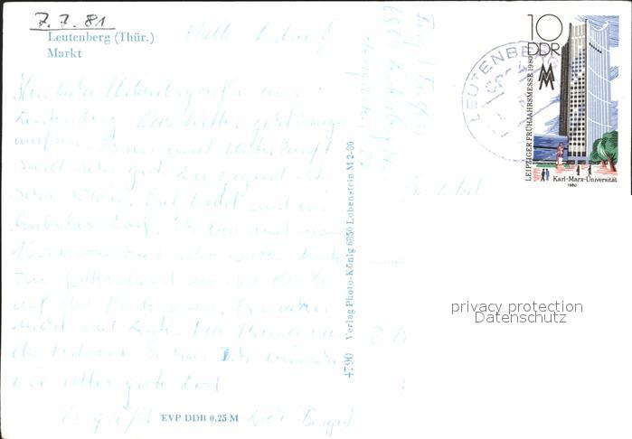 72273425 alte Postkarte Leutenberg Thueringen Markt Kirche postalisch gelaufen Erhaltung siehe scans KatCode: 11110016073106