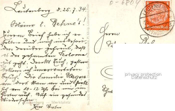 43353131 alte Postkarte Leutenberg Thueringen Marktplatz postalisch gelaufen Erhaltung siehe scans [KathaD81] KatCode: 11110016073106