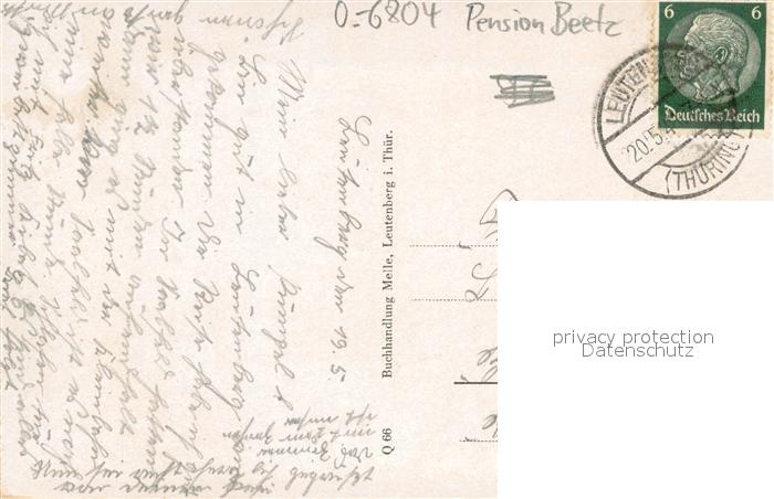 73693583 alte Postkarte Leutenberg Thueringen Pension Beetz postalisch gelaufen Erhaltung siehe scans [FriedD77] KatCode: 11110016073106