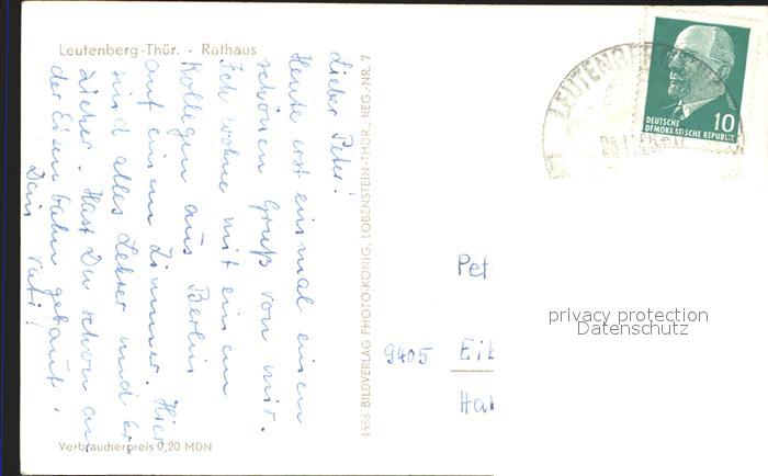 71918624 alte Postkarte Leutenberg Thueringen Rathaus postalisch gelaufen Erhaltung siehe scans KatCode: 11110016073106