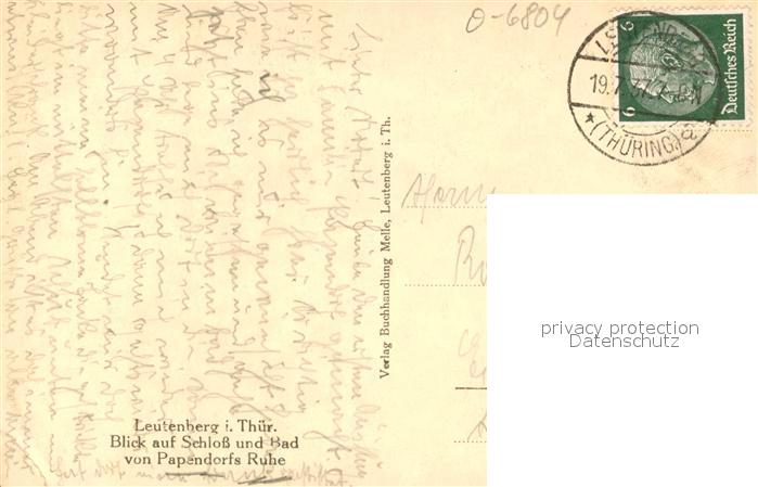 43353136 alte Postkarte Leutenberg Thueringen Schloss Bad von Papendorfs Ruhe postalisch gelaufen Erhaltung siehe scans [KathaD81] KatCode: 11110016073106