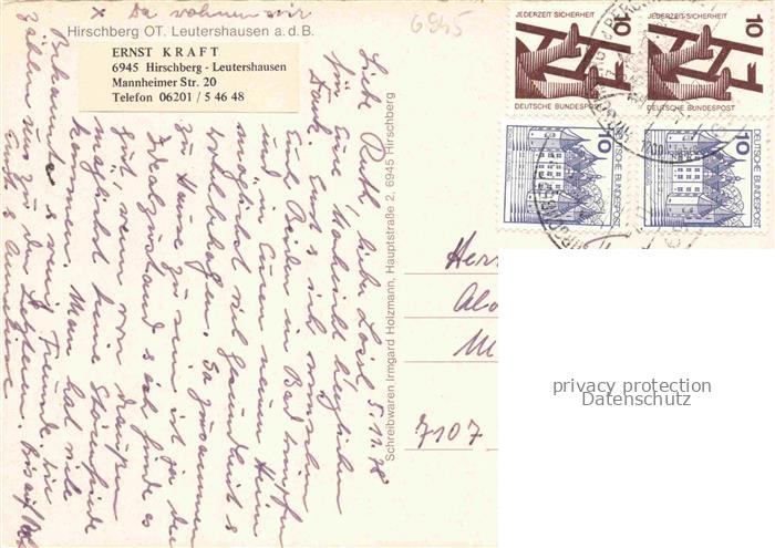 74035794 alte Postkarte Leutershausen Hirschberg Bergstrasse Fliegeraufnahme postalisch gelaufen Erhaltung siehe scans [WerneD78] KatCode: 11110008226107