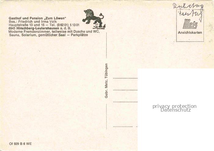 74048090 Leutershausen Hirschberg Bergstrasse Gasthof Pension Zum Loewen Gastraeume Ortsansicht postalisch nicht gelaufen Erhaltung siehe scans [FriedD77] KatCode: 11110008226107
