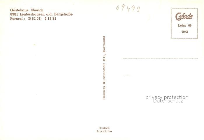 73569659 Leutershausen Hirschberg Bergstrasse G?stehaus Elmrich postalisch nicht gelaufen Erhaltung siehe scans [PaolaD17] KatCode: 11110008226107