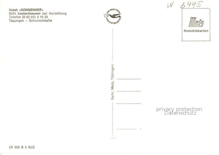 73129310 Leutershausen Hirschberg Bergstrasse Hotel Sonnenhof postalisch nicht gelaufen Erhaltung siehe scans [LiesaD40] KatCode: 11110008226107