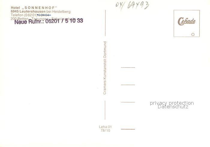 73664832 Leutershausen Hirschberg Bergstrasse Hotel Sonnenhof Hallenbad Panorama Zimmer Gaststube postalisch nicht gelaufen Erhaltung siehe scans [WerneD78] KatCode: 11110008226107