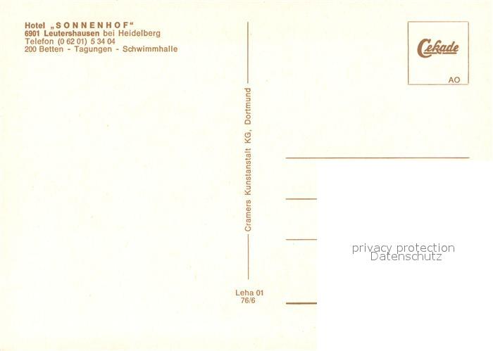 73645041 Leutershausen Hirschberg Bergstrasse Hotel Sonnenhof Hallenbad Zimmer Gaststube Panorama postalisch nicht gelaufen Erhaltung siehe scans [WerneD78] KatCode: 11110008226107
