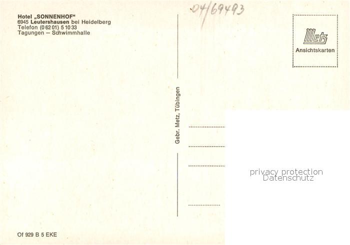 73645039 Leutershausen Hirschberg Bergstrasse Hotel Sonnenhof Schwimmhalle postalisch nicht gelaufen Erhaltung siehe scans [WerneD78] KatCode: 11110008226107