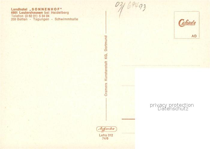 73645040 Leutershausen Hirschberg Bergstrasse Landhotel Sonnenhof Gastraeume Hallenbad postalisch nicht gelaufen Erhaltung siehe scans [WerneD78] KatCode: 11110008226107