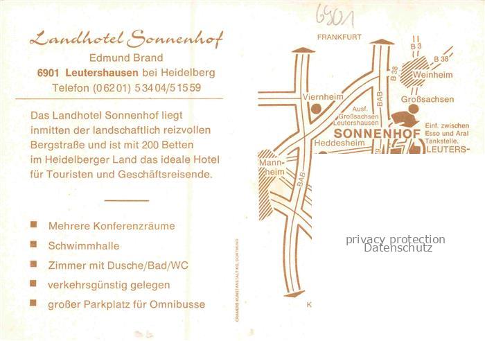 74048685 Leutershausen Hirschberg Bergstrasse Landhotel Sonnenhof Hallenbad Zimmer Gaststube postalisch nicht gelaufen Werbekarte (keine Postkarte) Erhaltung siehe scans [WerneD78] KatCode: 11110008226107