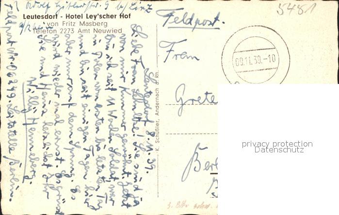41606868 alte Postkarte Leutesdorf Neuwied Hotel Leyscher Hof postalisch gelaufen Erhaltung siehe scans KatCode: 11110007138045