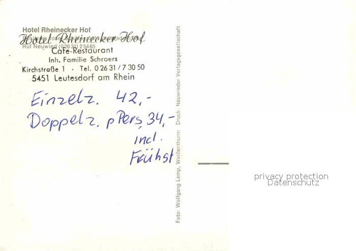 72893707 Leutesdorf Rhein Hotel Rheinecker Hof postalisch nicht gelaufen Erhaltung siehe scans [AndreD76] KatCode: 11110007138038