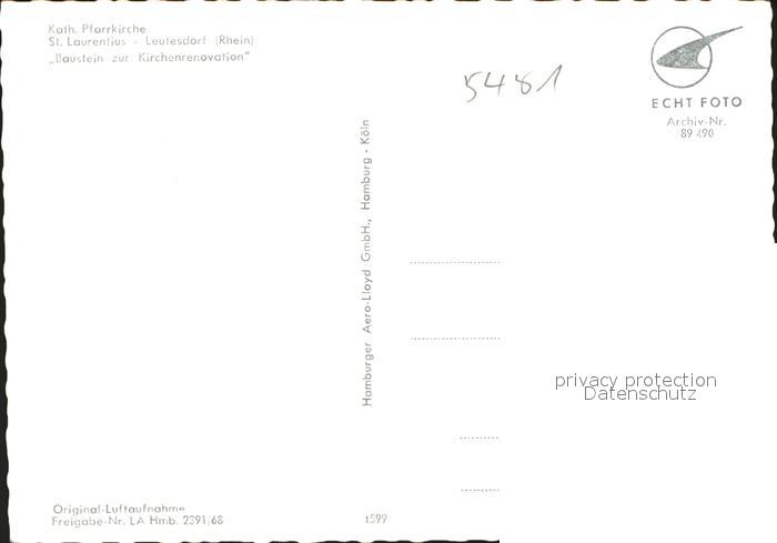41636105 Leutesdorf Rhein Pfarrkirche St. Laurentius Fliegeraufnahme postalisch nicht gelaufen Erhaltung siehe scans KatCode: 11110007138038