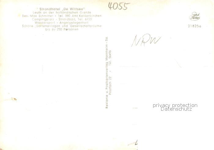 73697695 Leuth Strandhotel De Wittsee postalisch nicht gelaufen Erhaltung siehe scans [LiesaD40] KatCode: 11110005166016