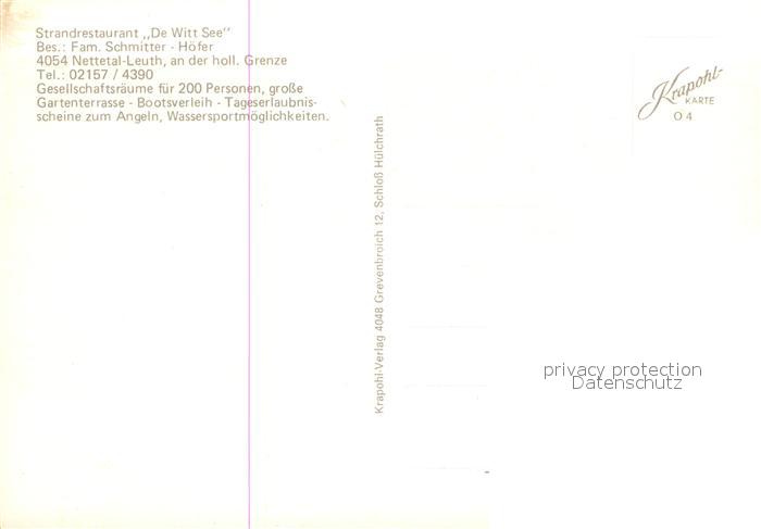 73725048 Leuth Strandrestaurant De Witt-See Segeln postalisch nicht gelaufen Erhaltung siehe scans [FriedD77] KatCode: 11110005166016