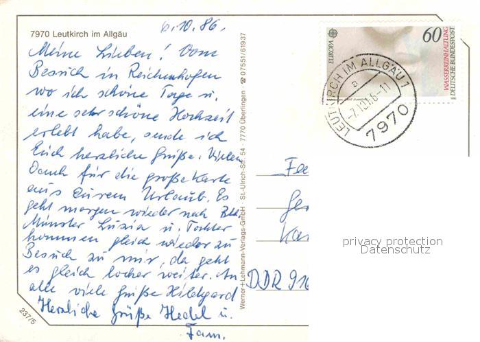 72641457 alte Postkarte Leutkirch Bocktuerme Rathaus Kornhaus Heimatmuseum Pulverturm Martinskirche Geschichte postalisch gelaufen Erhaltung siehe scans [FriedD77] KatCode: 11110008436055