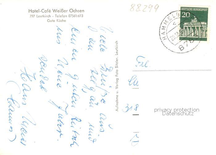 73854593 alte Postkarte Leutkirch Hotel Cafe Weisser Ochsen Gaststube Zimmer postalisch gelaufen Erhaltung siehe scans [WerneD78] KatCode: 11110008436055
