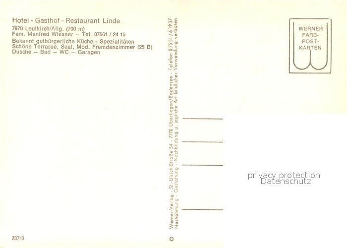 73616429 Leutkirch Hotel Gasthof Restaurant Linde postalisch nicht gelaufen Erhaltung siehe scans [WerneD78] KatCode: 11110008436055