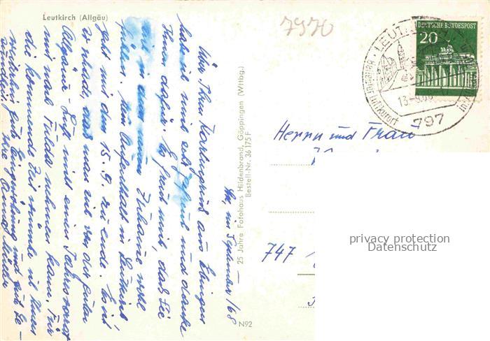 74053077 alte Postkarte Leutkirch Kirche postalisch gelaufen Erhaltung siehe scans [WerneD78] KatCode: 11110008436055
