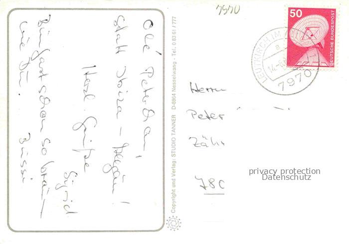 74053073 alte Postkarte Leutkirch Kornhaus Marktplatz Pulverturm Park Gaenselieselbrunnen postalisch gelaufen Erhaltung siehe scans [WerneD78] KatCode: 11110008436055