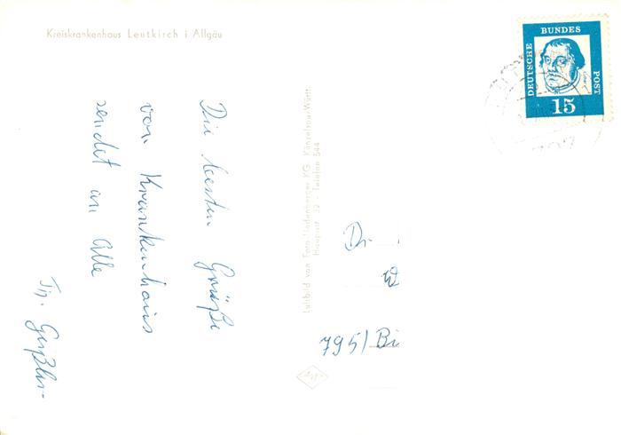 73893099 alte Postkarte Leutkirch Kreiskrankenhaus Fliegeraufnahme postalisch gelaufen Erhaltung siehe scans [FriedD77] KatCode: 11110008436055