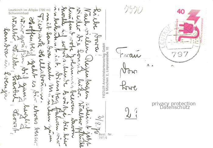 74053080 alte Postkarte Leutkirch Schwimmbad postalisch gelaufen Erhaltung siehe scans [WerneD78] KatCode: 11110008436055