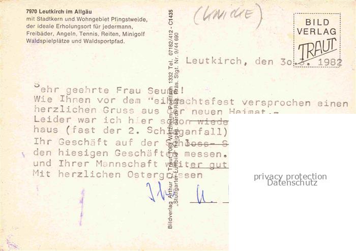 74100063 Leutkirch Stadtkern und Wohngebiet Pfingstweide postalisch nicht gelaufen Fliegeraufnahme Erhaltung siehe scans [FriedD77] KatCode: 11110008436055