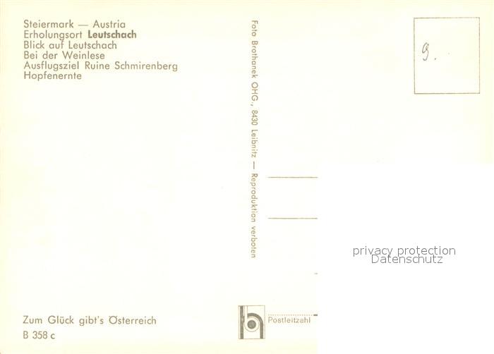 73626121 Leutschach Panorama Windrad Burgruine Schmirenberg Weinlese Hopfenernte postalisch nicht gelaufen Erhaltung siehe scans [FriedD77] KatCode: 11390225061023